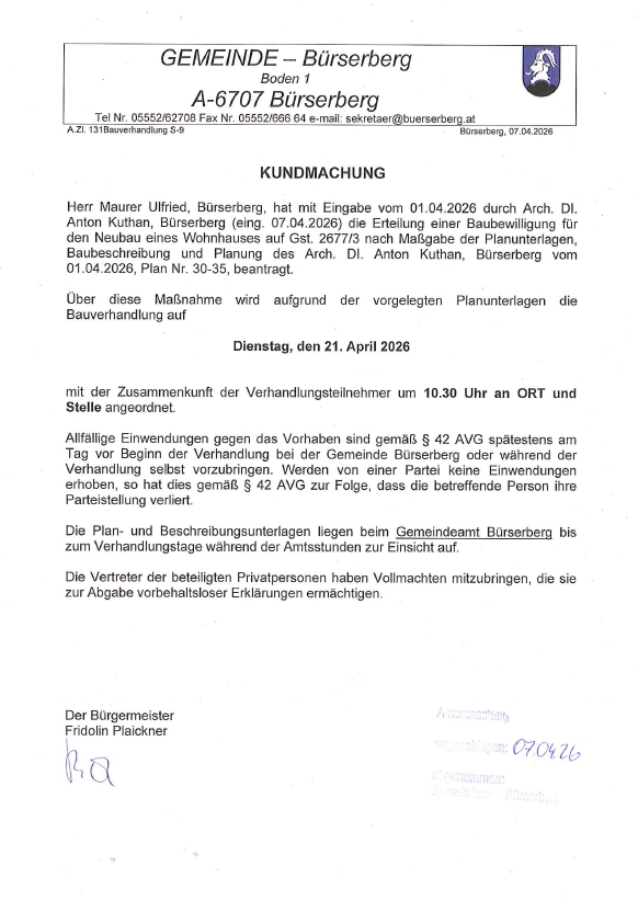 Aktuelles aus Bürserberg | Veröffentlichungsportal