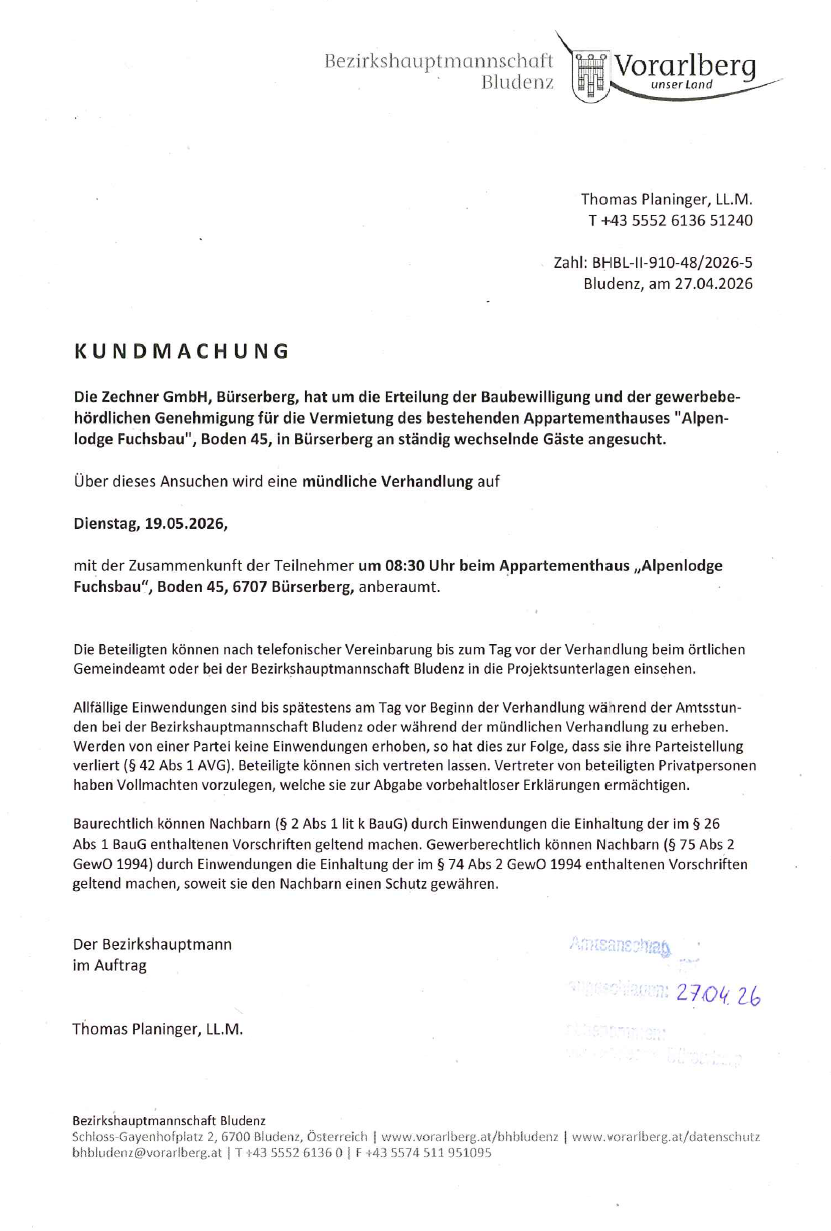 Kundmachung Baubewilligung Zechner GmbH