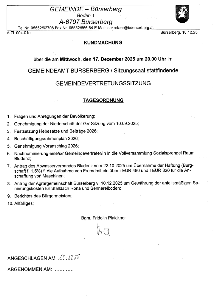GEMEINDE BÜRSERBERG